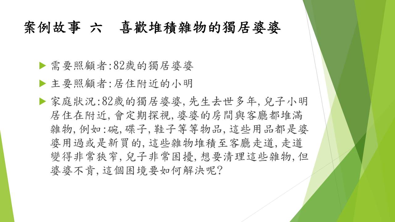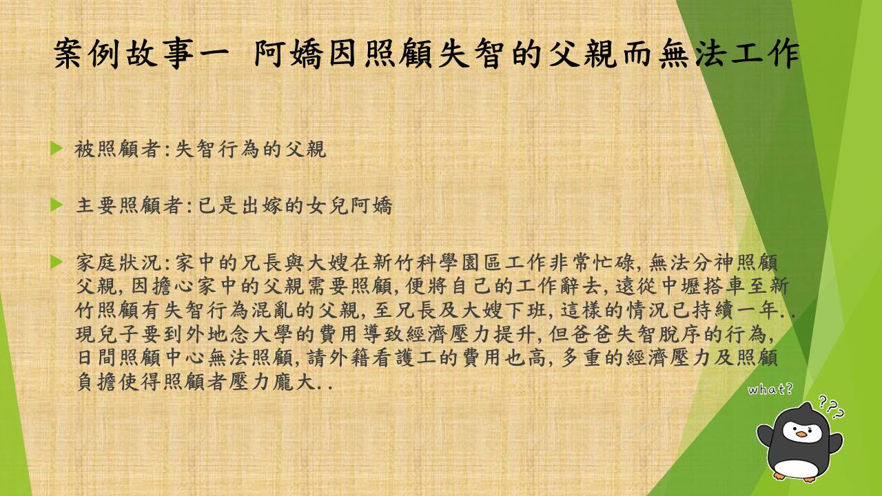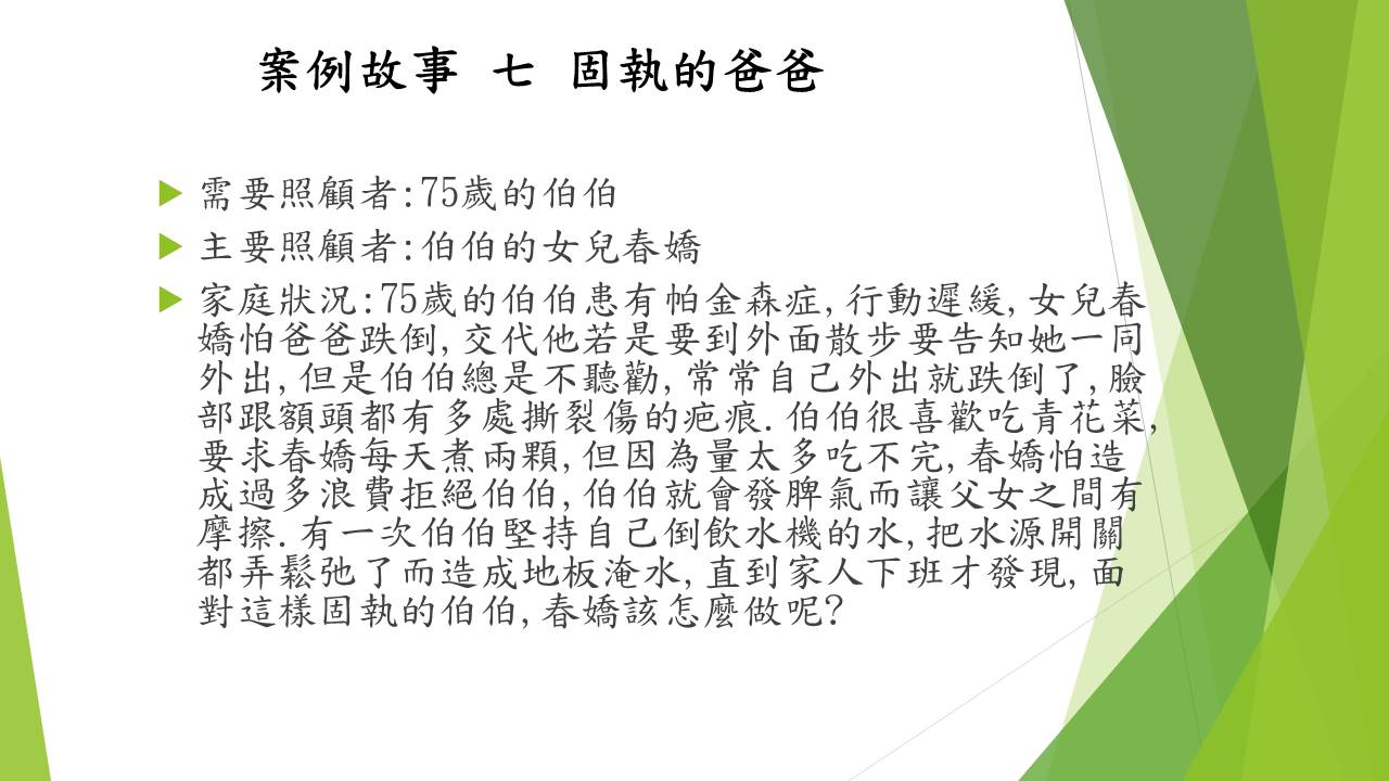 照顧問題來自以下七個故事的衍申。