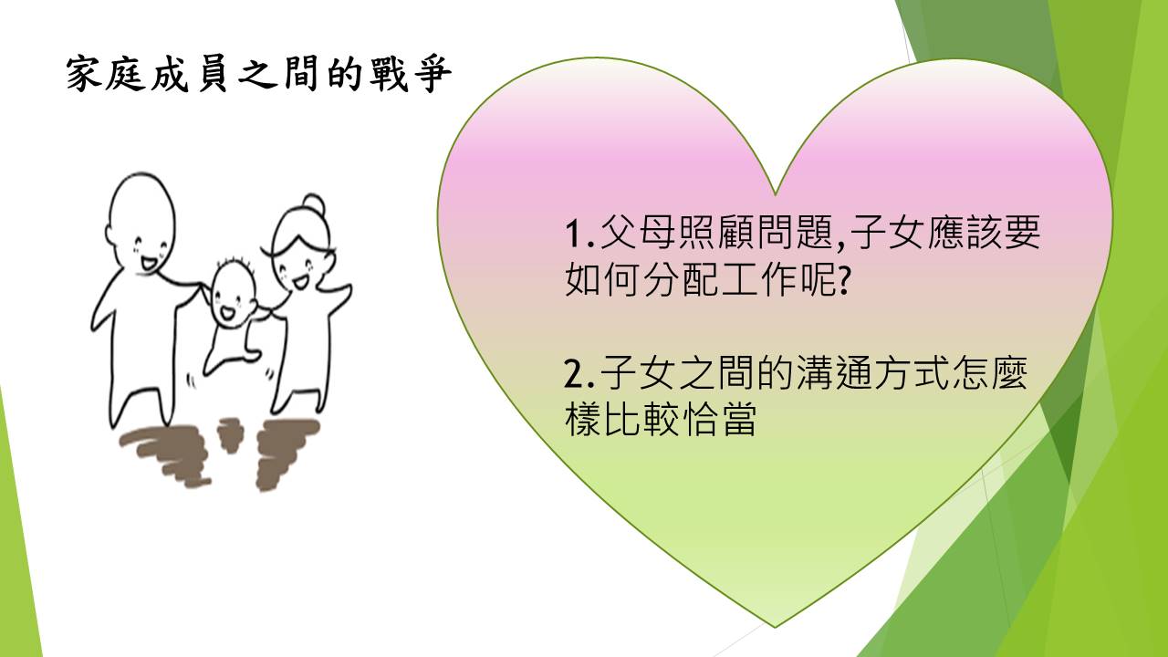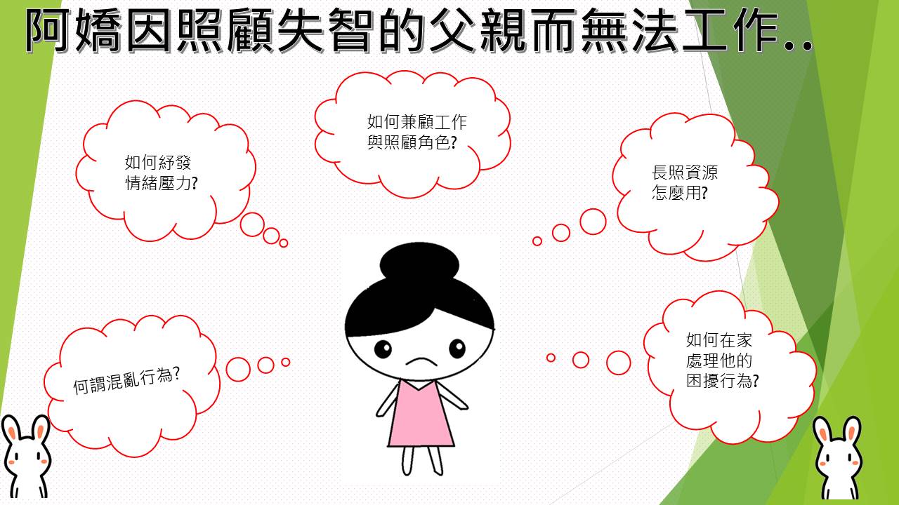這個網站提供豐富的照顧資訊,我們選擇的題材是以 家庭照顧者 常遇到的困難為主軸,而這些